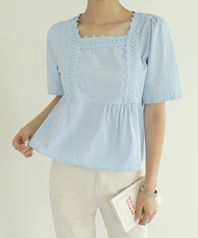 스퀘어넥 레이스 테잎 반팔 블라우스