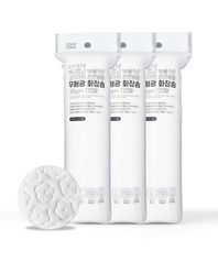 부드럽고 보풀적은 프리미엄 순면원형 무형광 화장솜 180gsm 120매 X 3세트