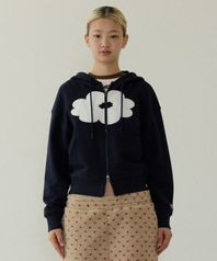 FLORAL CROPPED HOODIE ZIP-UP navy