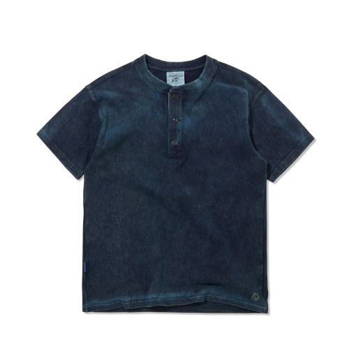 인디고 틴워싱 헨리넥 반팔티 카키_FR2KT43U