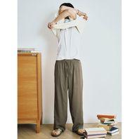 리넨 블랜디드 와이드핏 이지 팬츠 카키