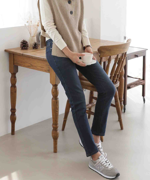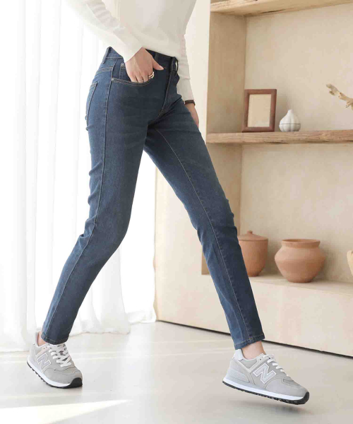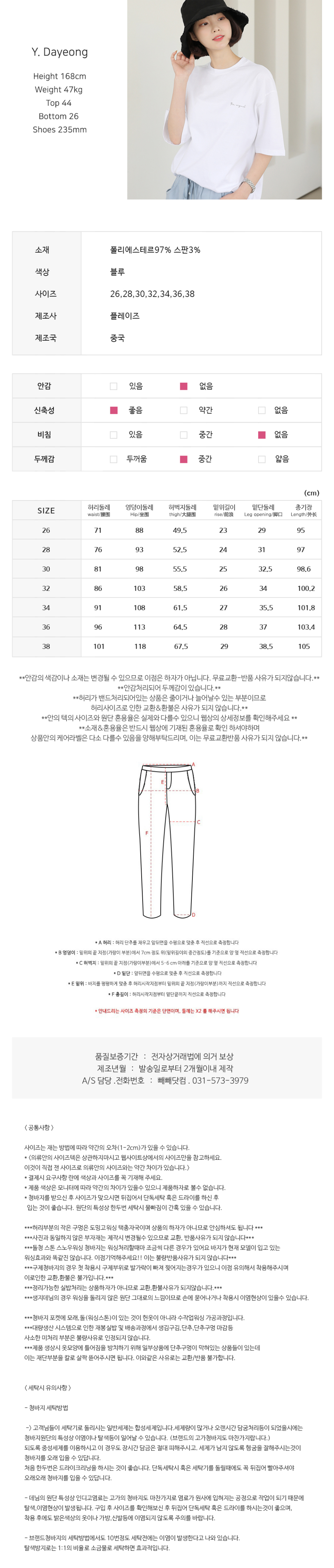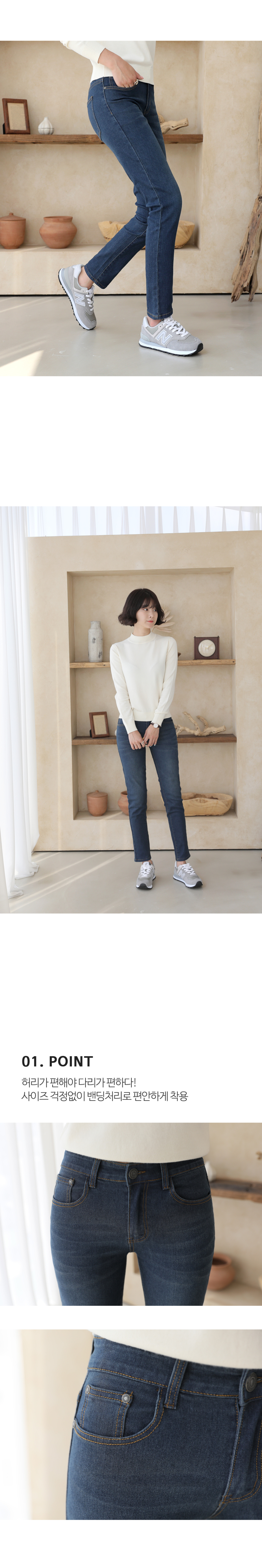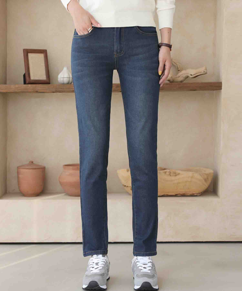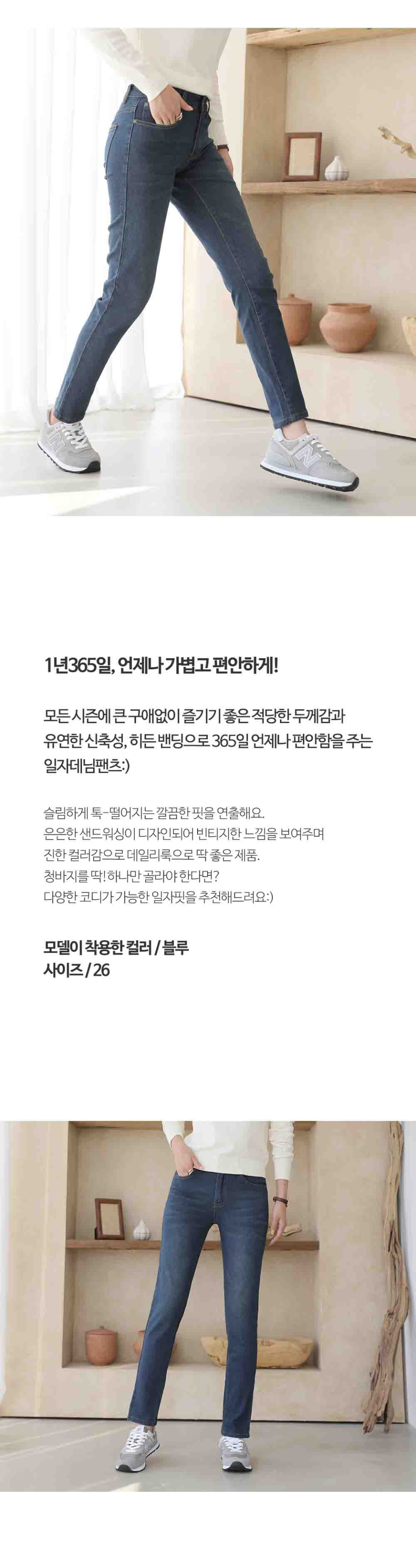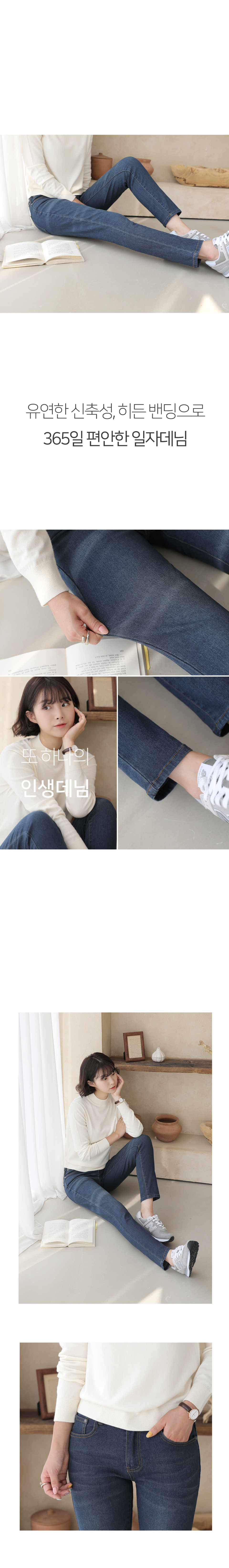 시크릿밴딩 워싱 스판 일자 데님팬츠