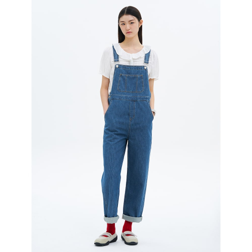 골지 조직의 데님 오버롤입니다. 스판기 없는 데님 원단을 사용하여 탄탄하게 라인을 잡아줍니다. 독특한 소재감으로 코디의 포인트가 되어주는 아이템입니다.