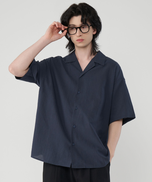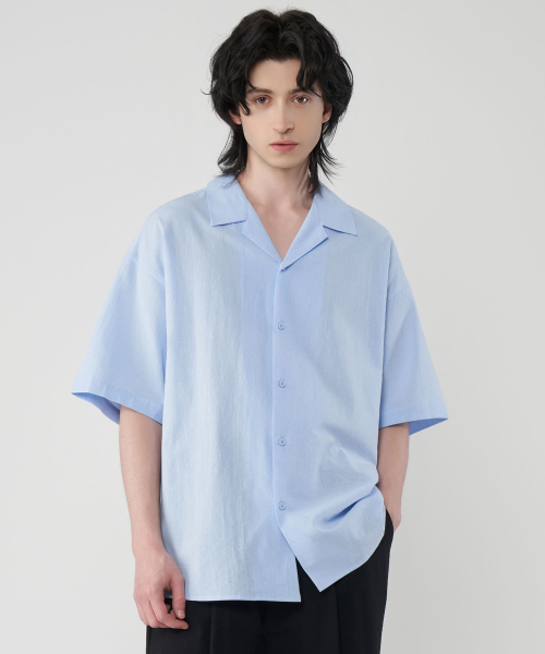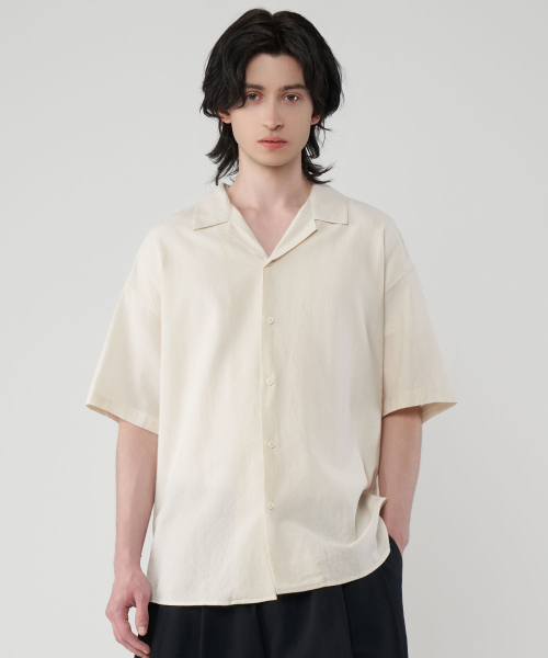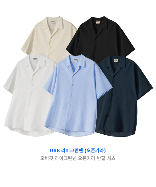 오버핏 라이크린넨 오픈카라 반팔 셔츠 5Color