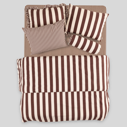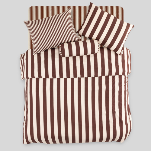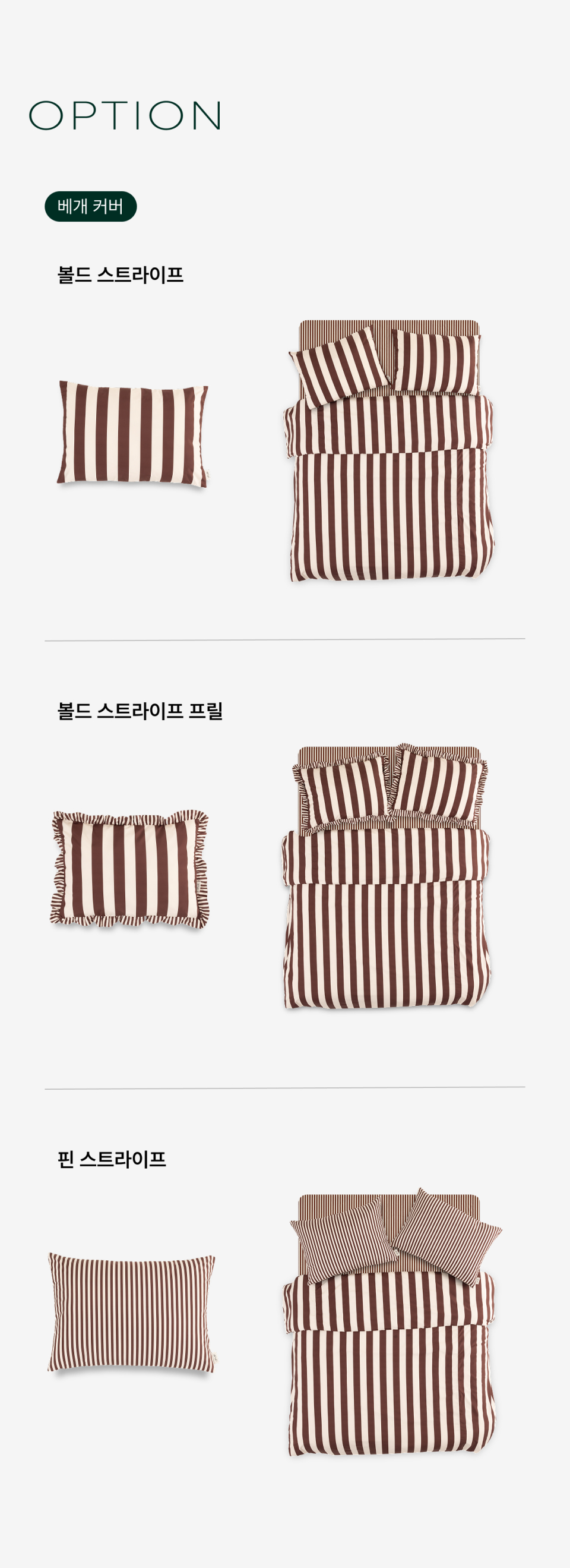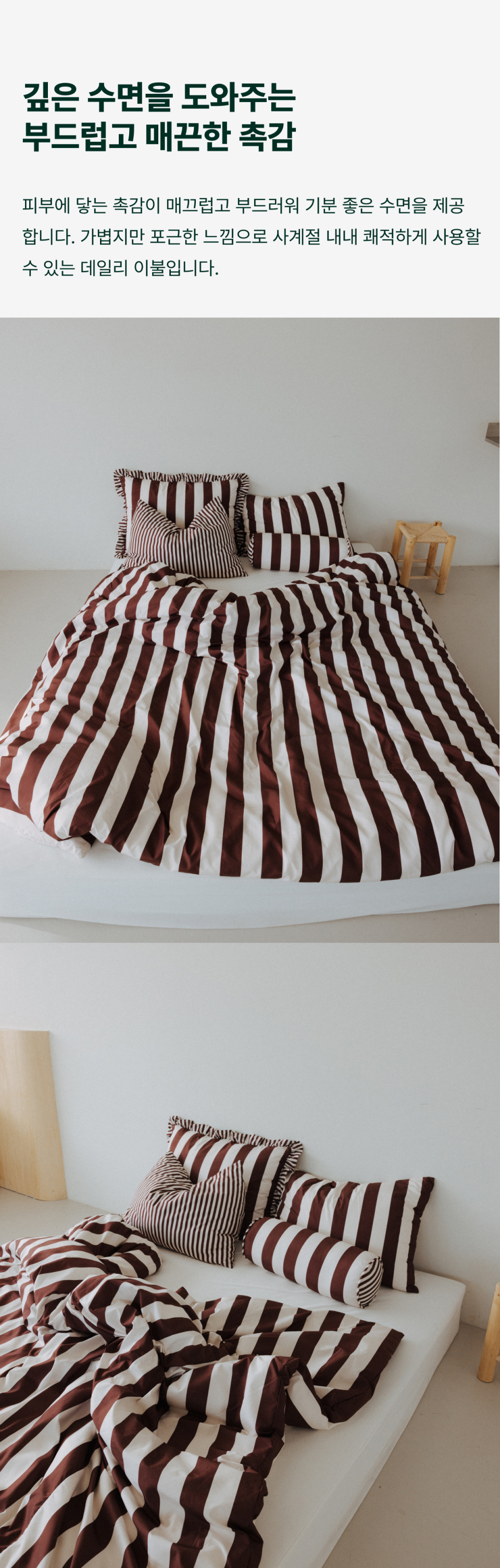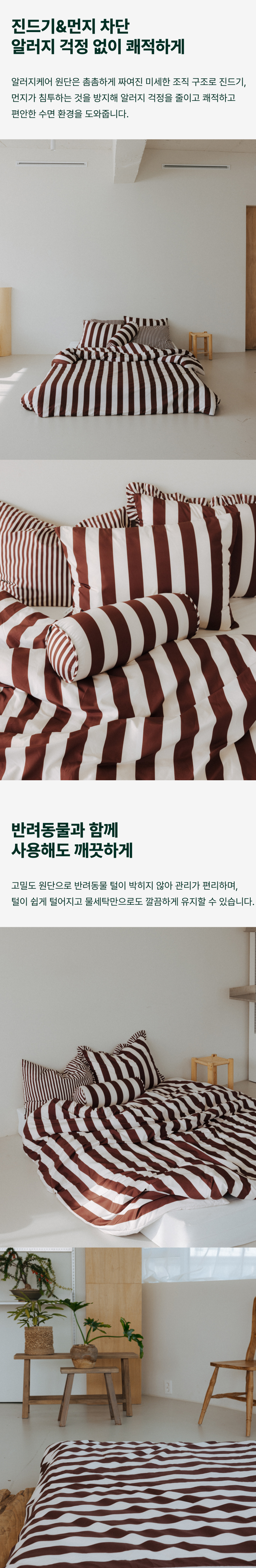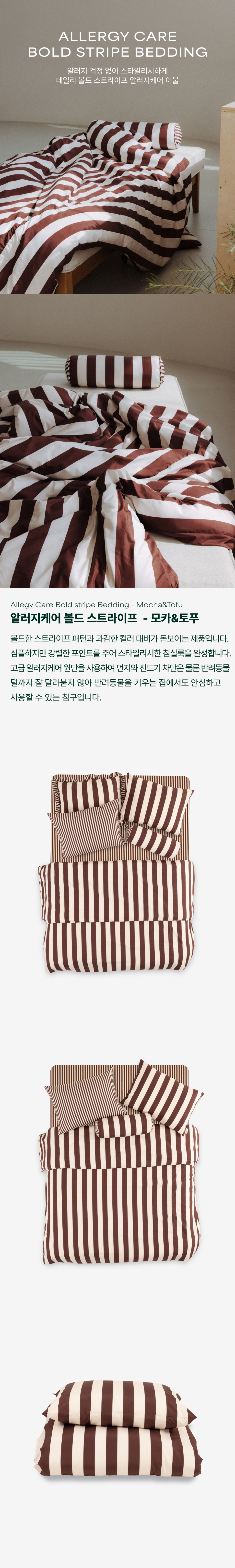 알러지케어 볼드 스트라이프 이불 베개 커버 세트(SS/Q)-Mocha&Tofu