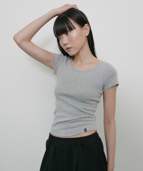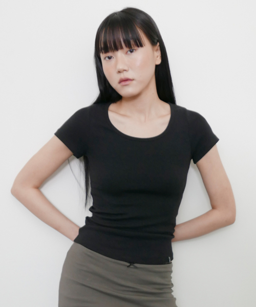 우먼즈 리브드 슬림 핏 티셔츠 [블랙]