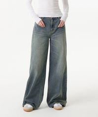우먼즈 와이드 트라페즈 데님 팬츠 [러스티 블루]