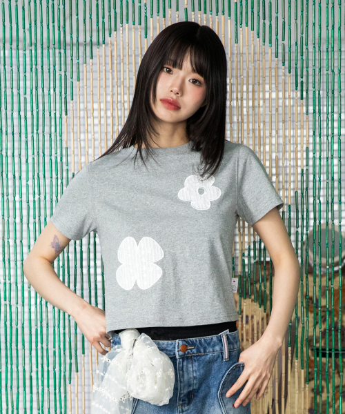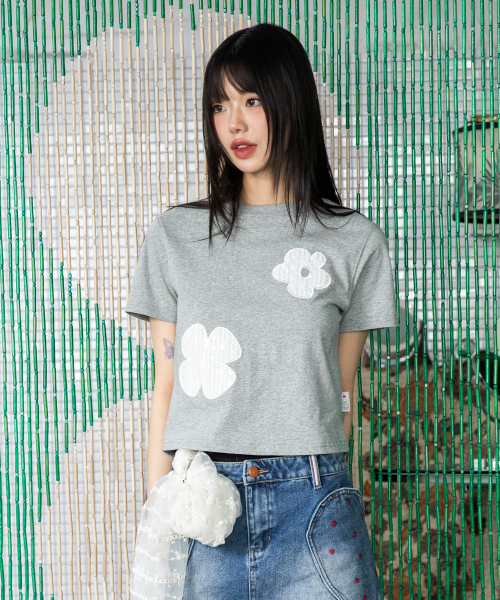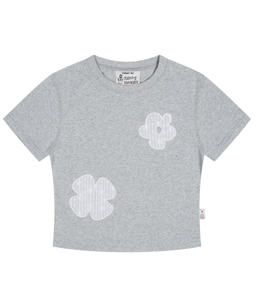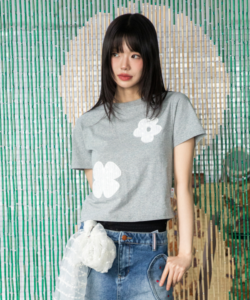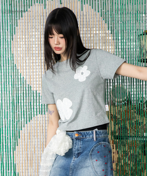WXT043 솜사탕 레이스 아플리케 반팔 티셔츠 (MELANGE GRAY)