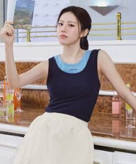 [고윤정착용] W LAYERED SLEEVELESS navy