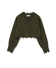 Frayed Edge Cropped Cardigan Khaki