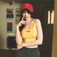 여성 스퀘어 포인트 로고 브라탑 옐로우