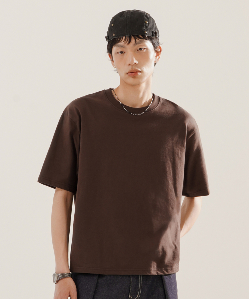 보이 크롭 반팔티셔츠 다크브라운 KJST2619
