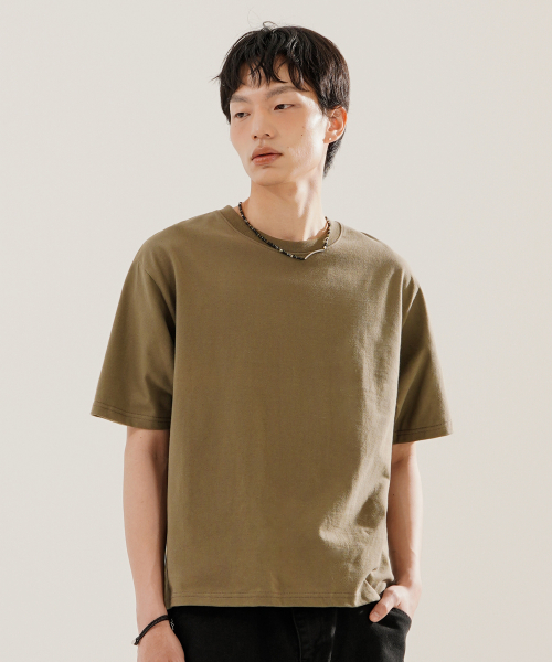 보이 크롭 반팔티셔츠 올리브베이지 KJST2619