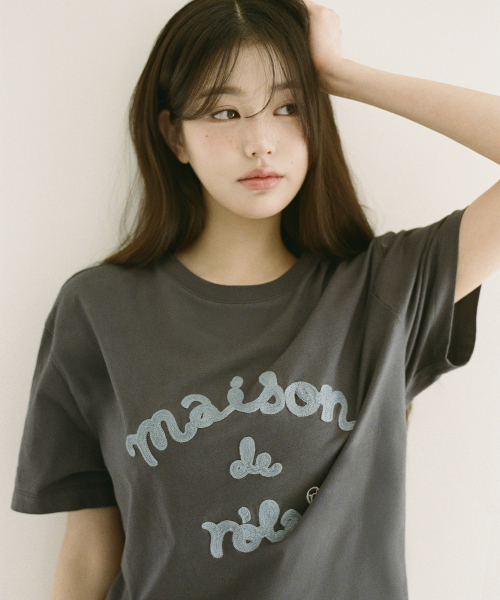 MAISON DE ROLA EMBROIDERY LOOSE FIT T-SHIRT CHARCOAL GRAY