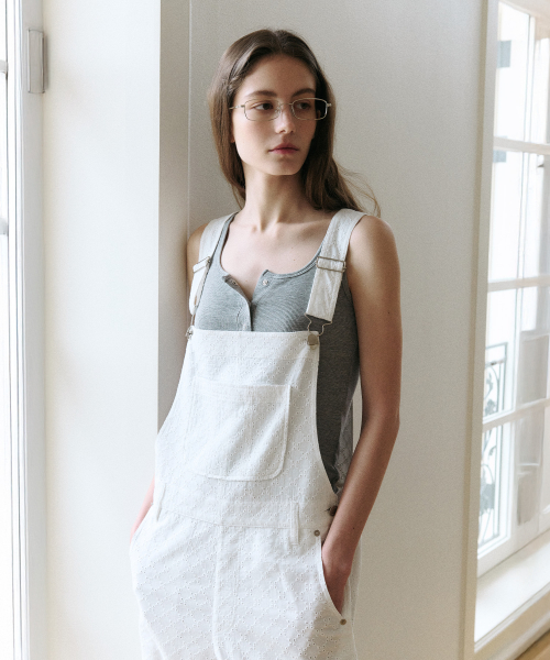 EYELET SEMI WIDE OVERALL PANTS WHITE