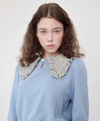 체크 카라 크롭 맨투맨 [파스텔 블루]
