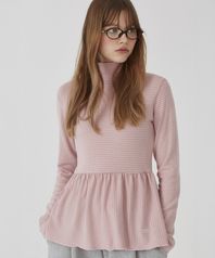 플레어 스트라이프 터틀넥 티셔츠 [핑크]