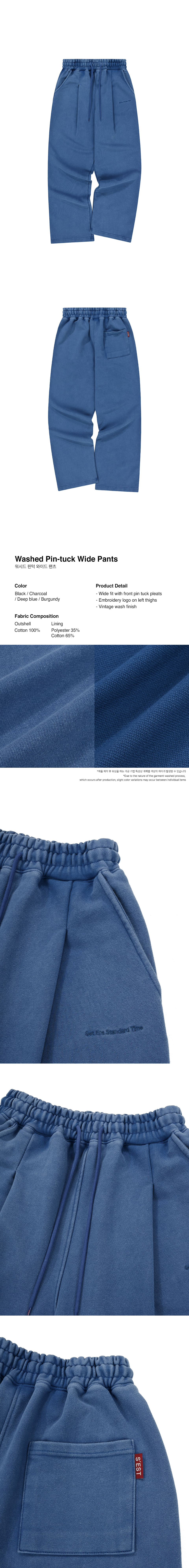 Washed Pintuck Wide Pants Deep Blue