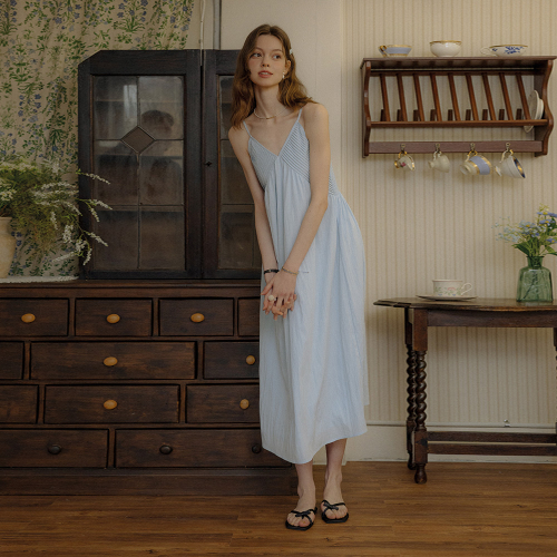 DD_Blue sling v-neck dress