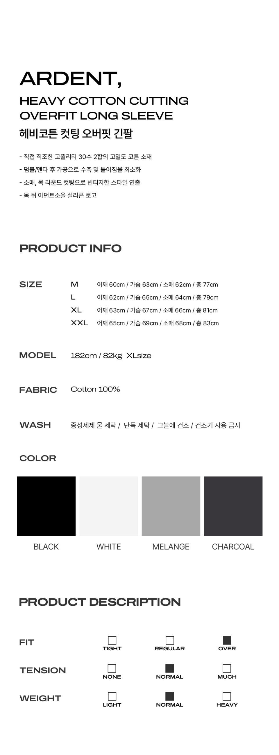 헤비코튼 컷팅 오버핏 긴팔(멜란지)