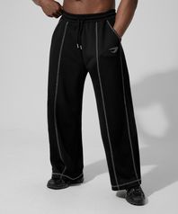 오버로크 스티치 스웨트 와이드 팬츠_블랙