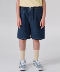 원 턱 와이드 데님 쇼츠 [미디엄 인디고]