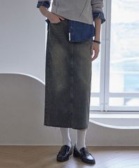 WREN CARGO POCKET DENIM LONG SKIRT_3COLORS_VINTAGE BLUE