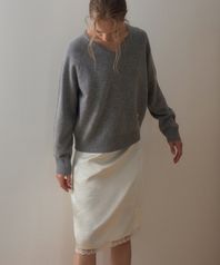 SATIN LACE ARRANGEMENT SKIRT_IVORY
