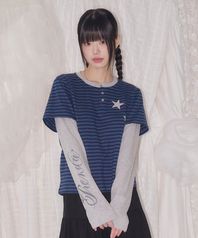 STRIPE LAYERED HENRY NECK LONG SLEEVE DEEP BLUE