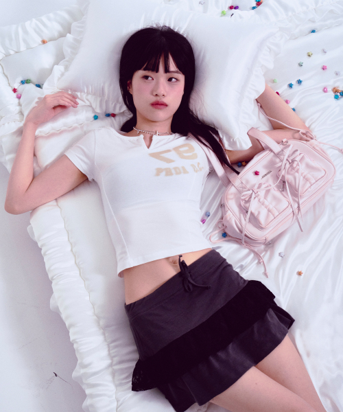 97PDC LOGO LACE NECK TEE WHITE