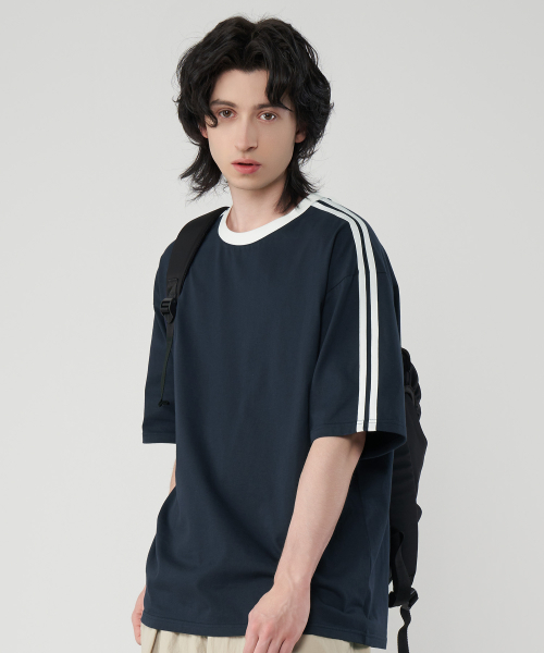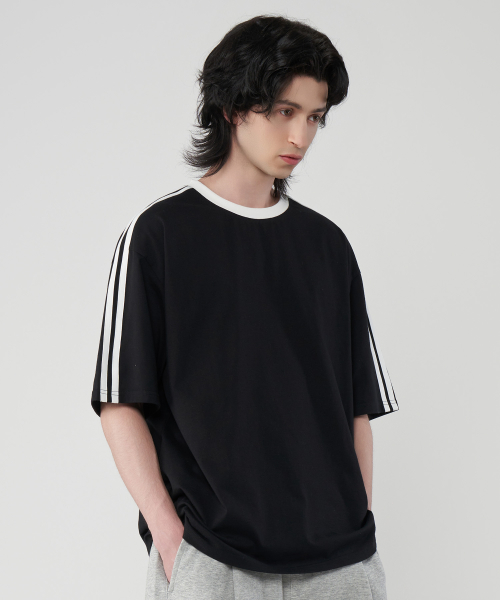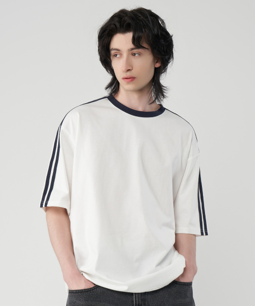 오버핏 트랙 반팔 배색 티셔츠 3Color