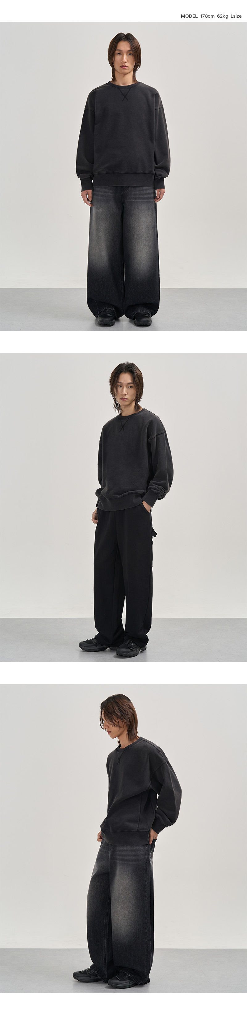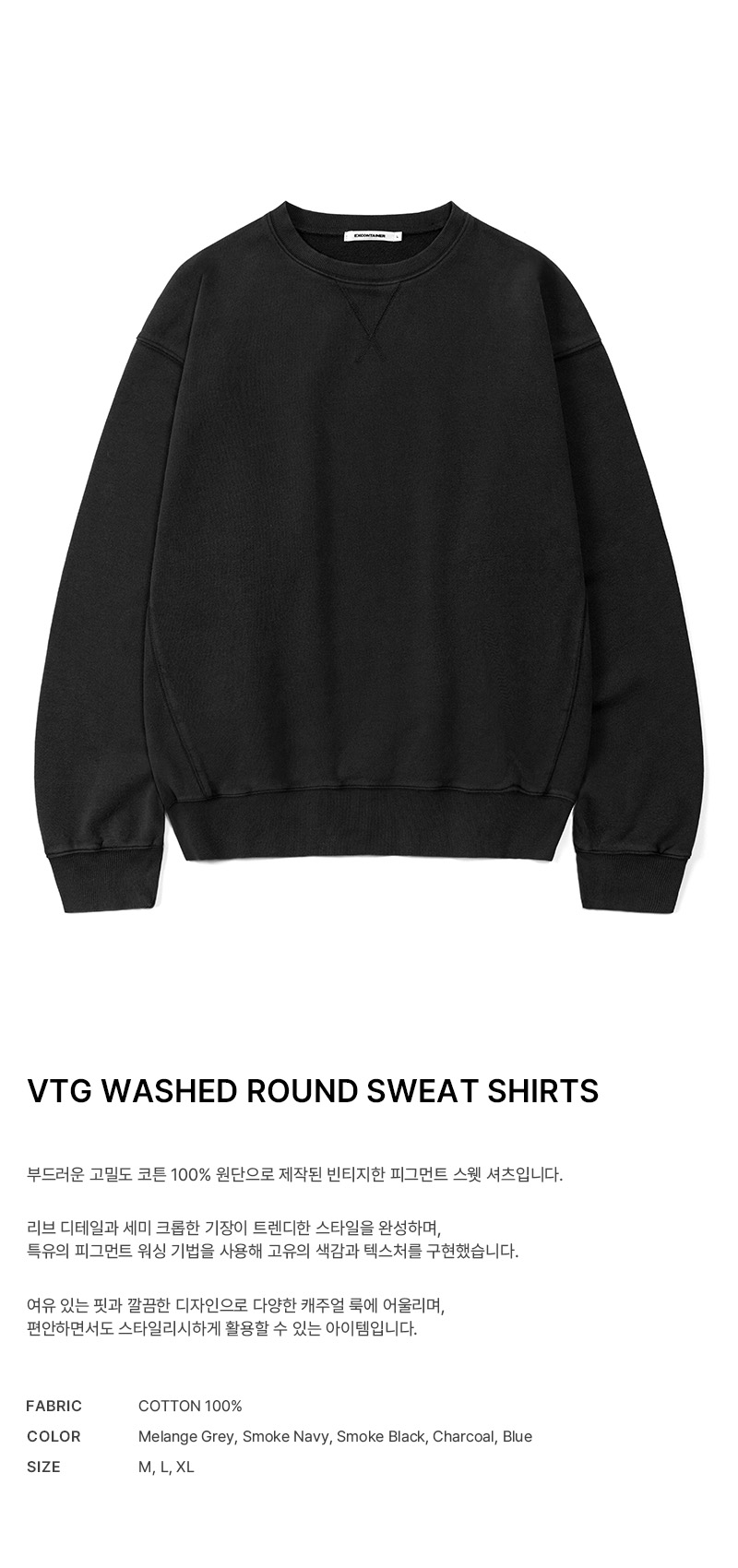 VTG 워시드 라운드 스웻 셔츠 (SMOKE BLACK)