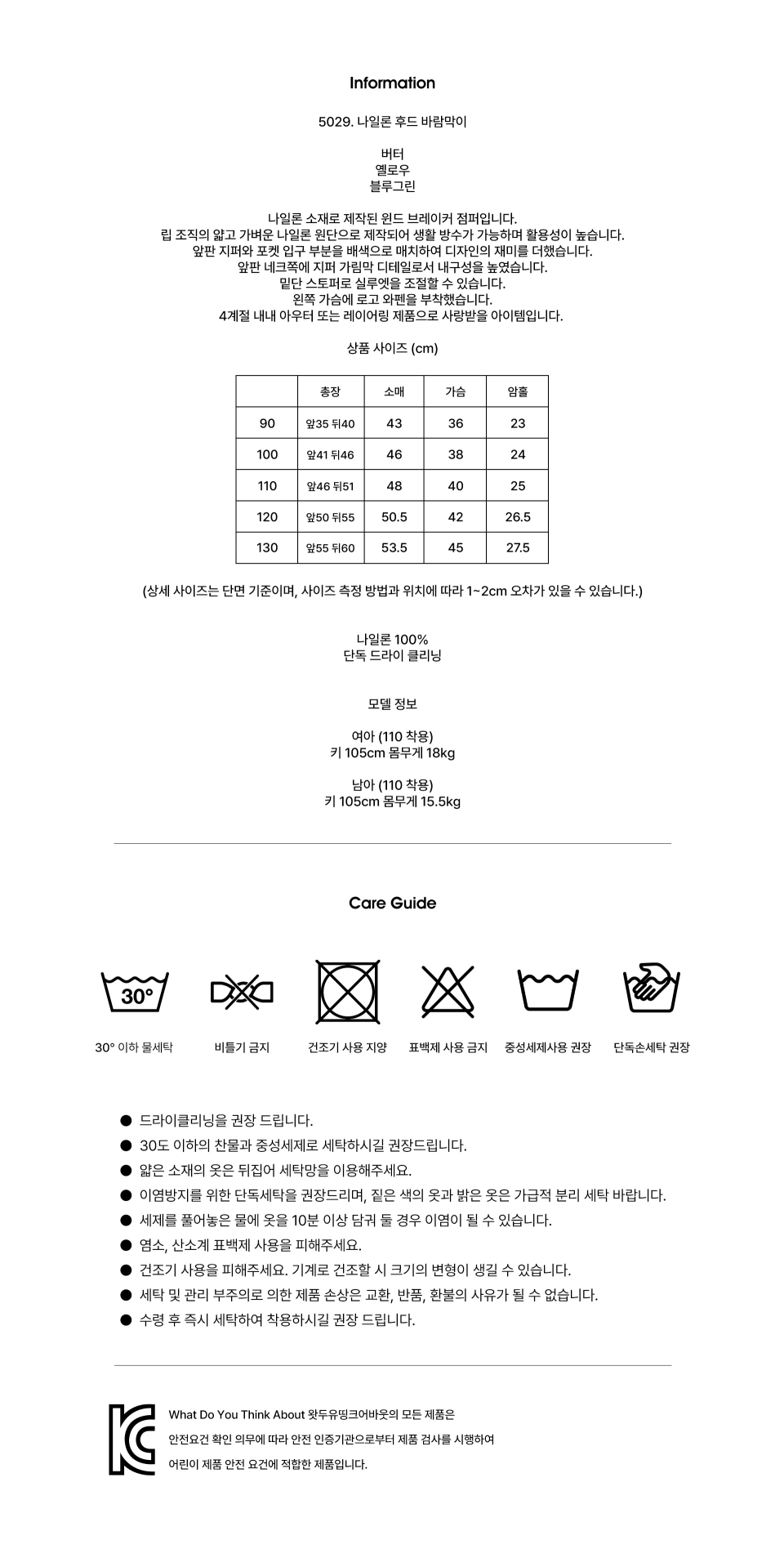 5029. 나일론 후드 바람막이 _ 옐로우