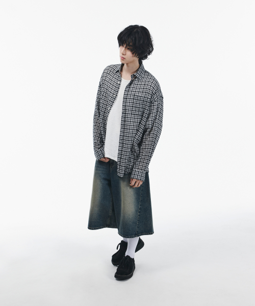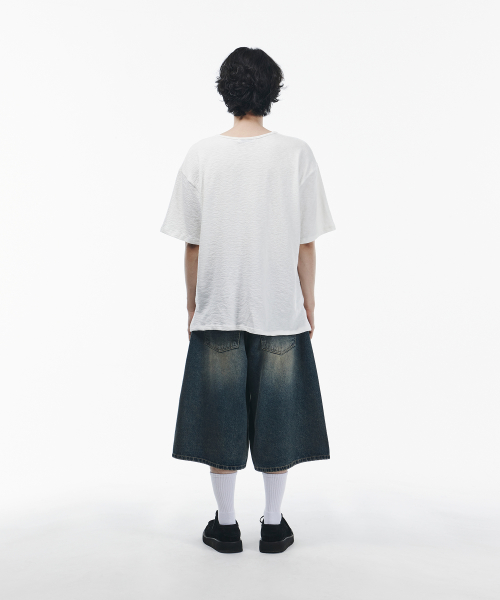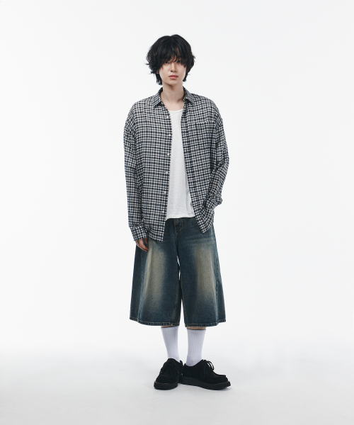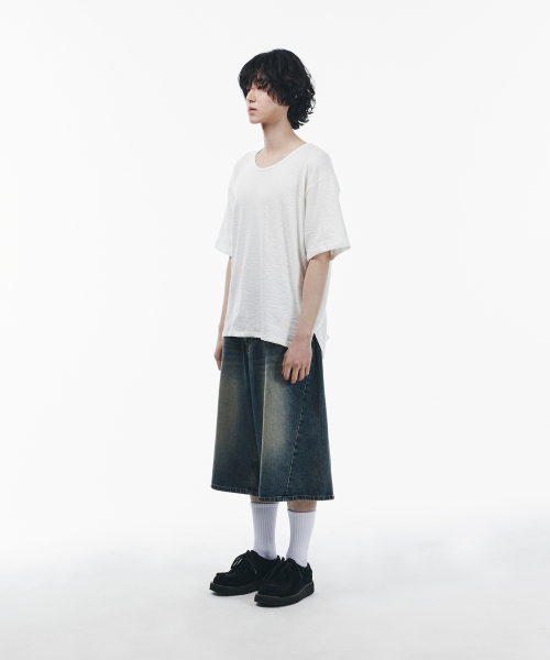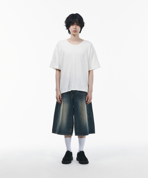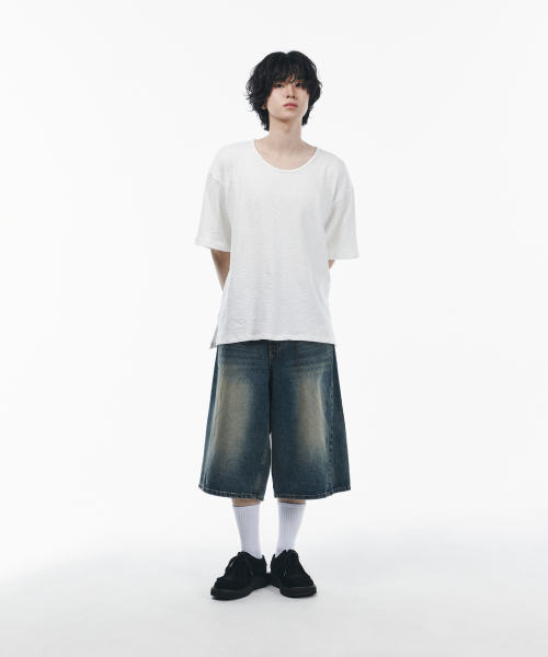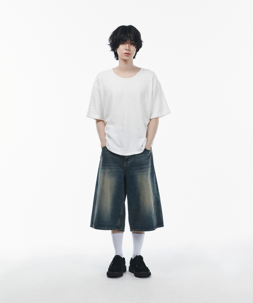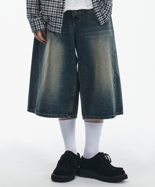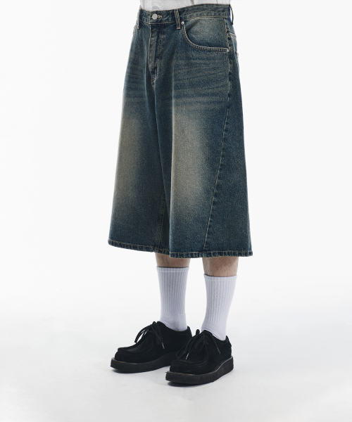 워싱 커브드 버뮤다 데님 팬츠[빈티지인디고]