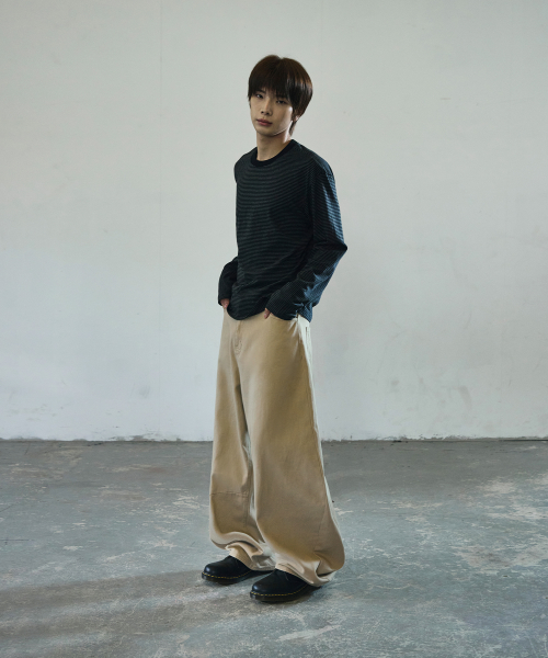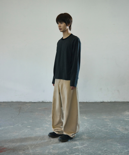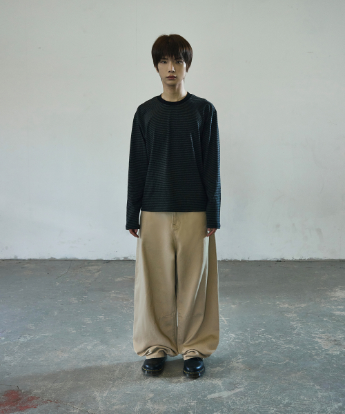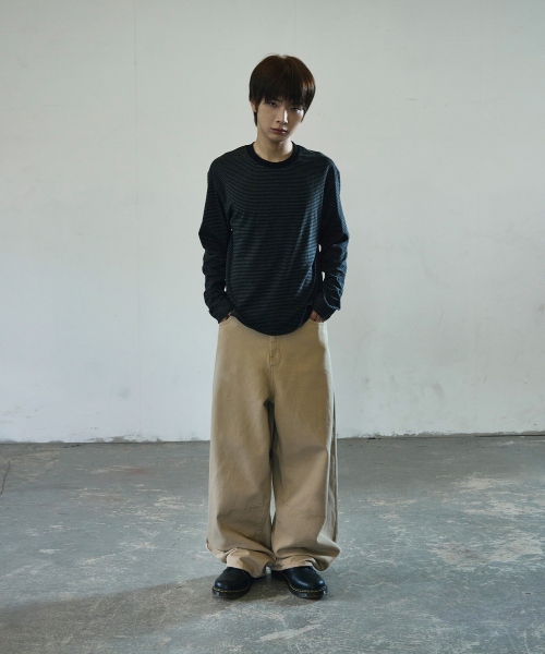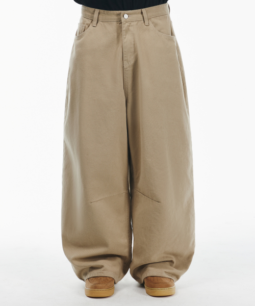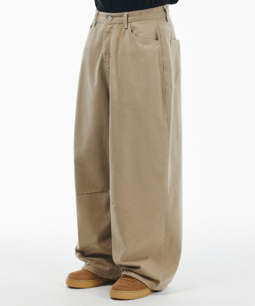와이드 커브드 다트 코튼 팬츠[베이지]