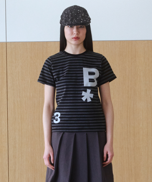 B logo 슬림핏 티셔츠 [스트라이프 블랙]