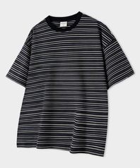 잔 스트라이프 오버핏 반팔 티셔츠 [블랙]