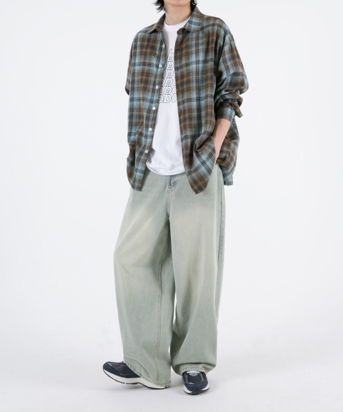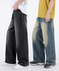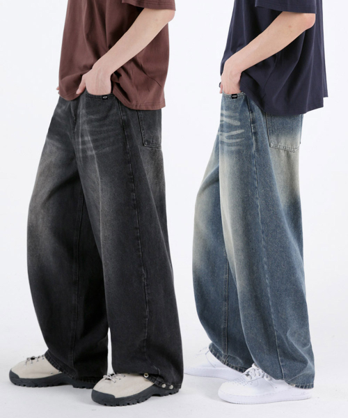 남자 밑단 조절버튼 와이드데님팬츠 2COLOR