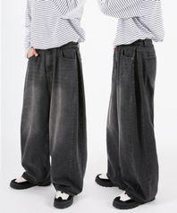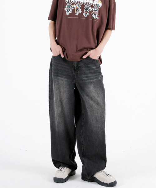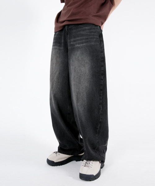 사이드핀턱 벌룬와이드 데님팬츠 블랙