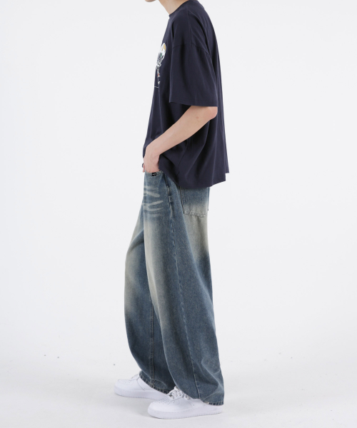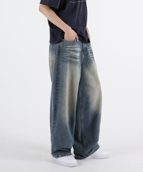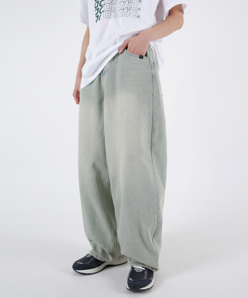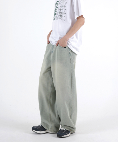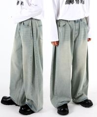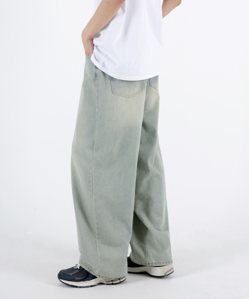 사이드핀턱 벌룬와이드 데님팬츠 옐로우틴