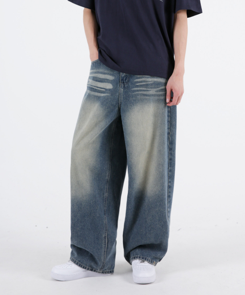 이지와이드 데님팬츠 블루