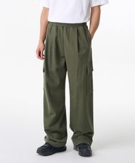 원 턱 와이드 카고 스웨트 팬츠 [카키]