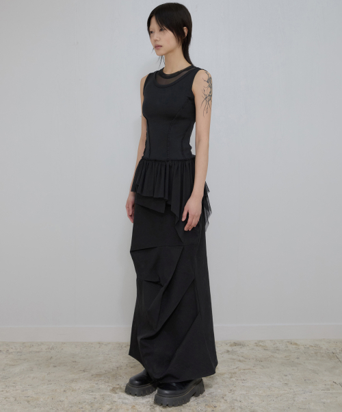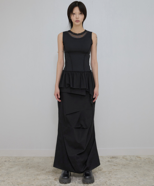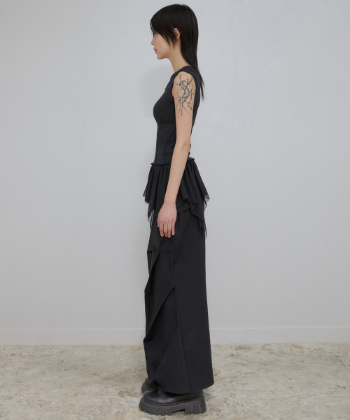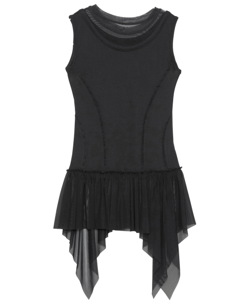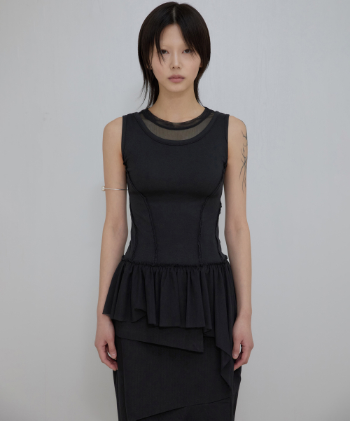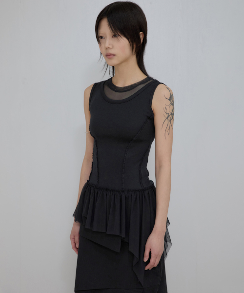Layered Lace Frill Sleeveless (FL-157_Black)