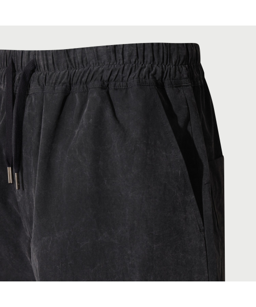 무릎위 기장감을 선보이는 남성 쇼츠입니다. 빈티지한 이펙트가 적용된 코튼 소재를 사용했습니다. 풀밴딩 + 스트링 사양으로 편안한 착용감을 제공합니다. 옆라인 끝단 트임 디테일이 있어 움직임이 한결 편안합니다. 후면 아웃포켓 디테일로 수납성을 겸비했습니다.