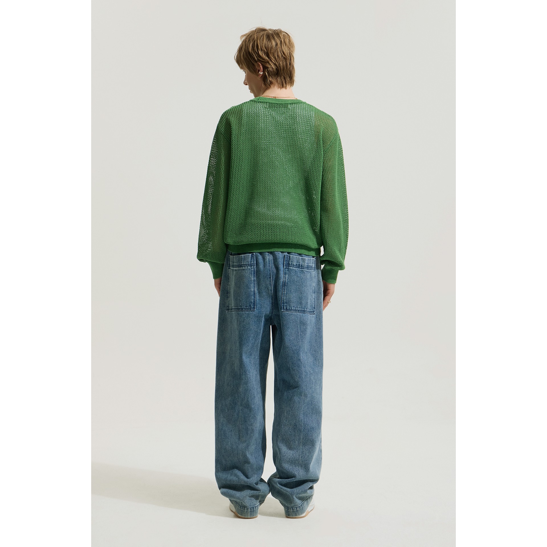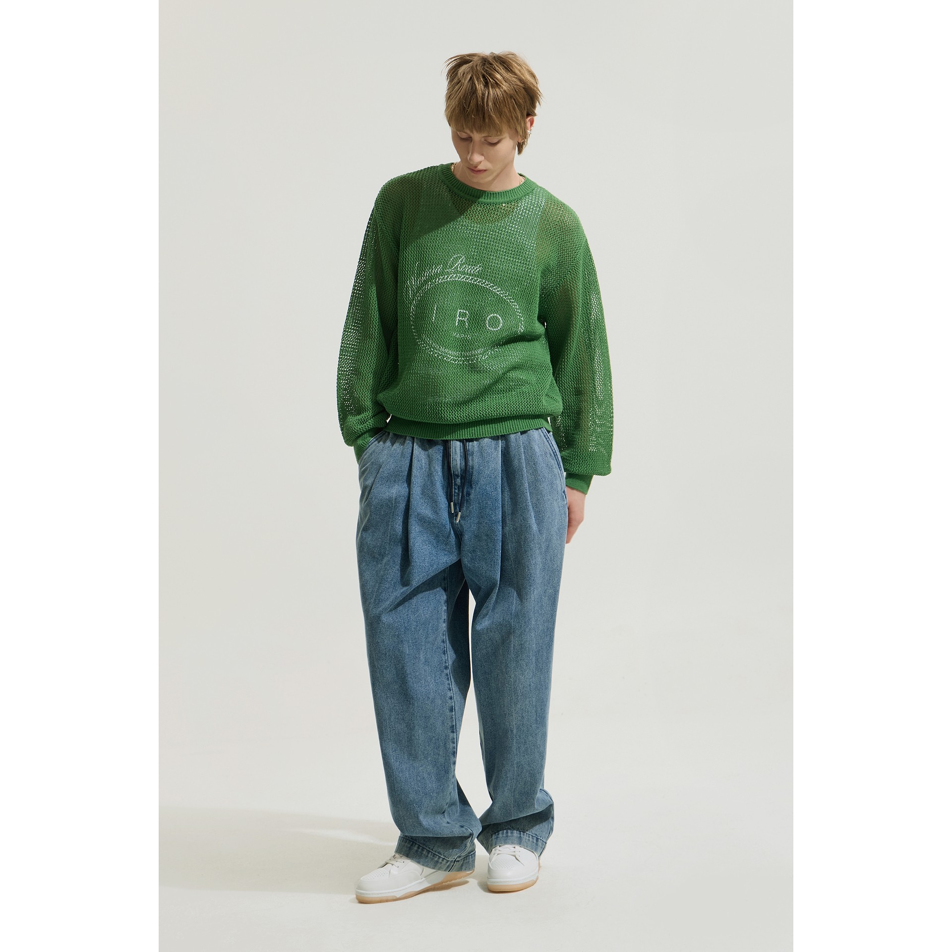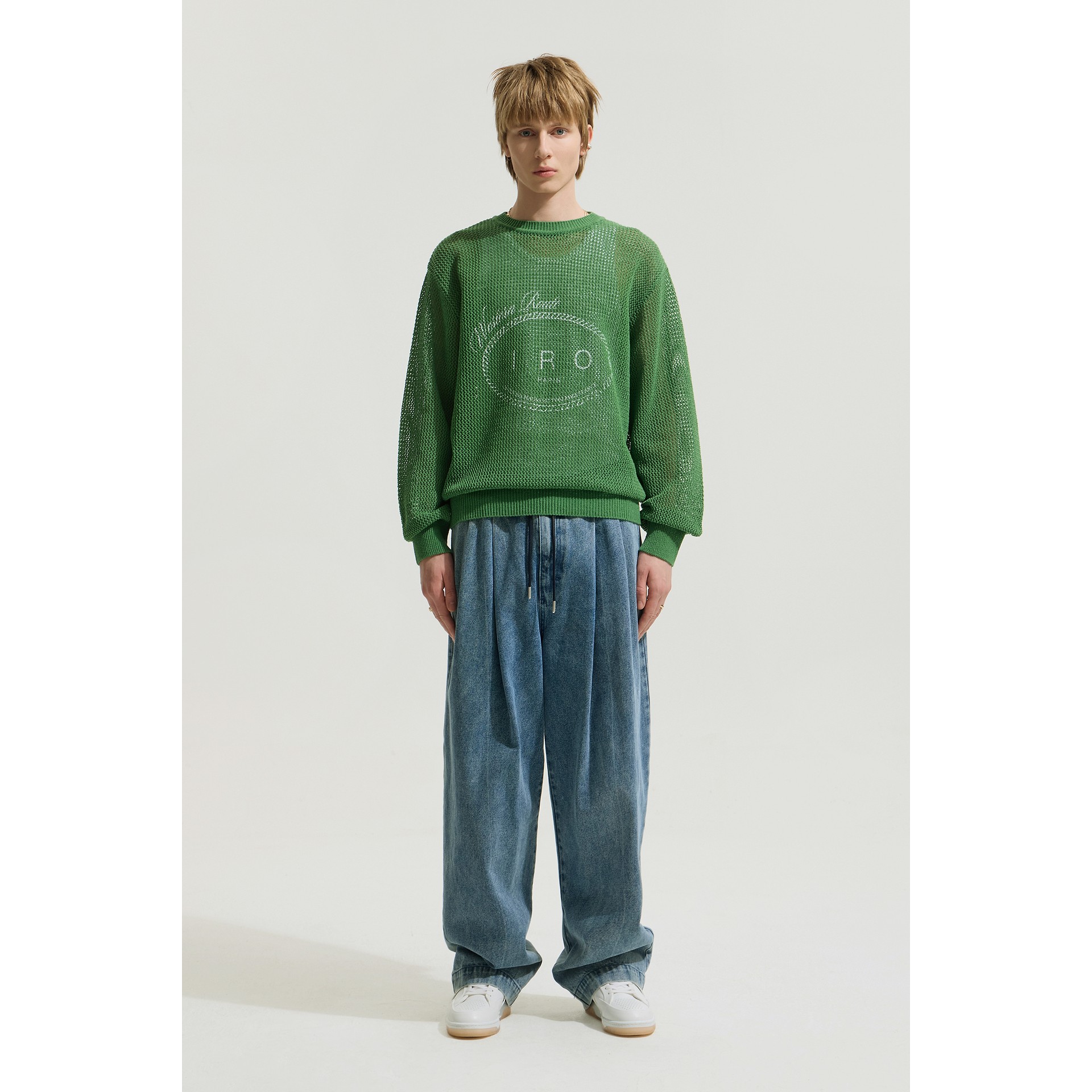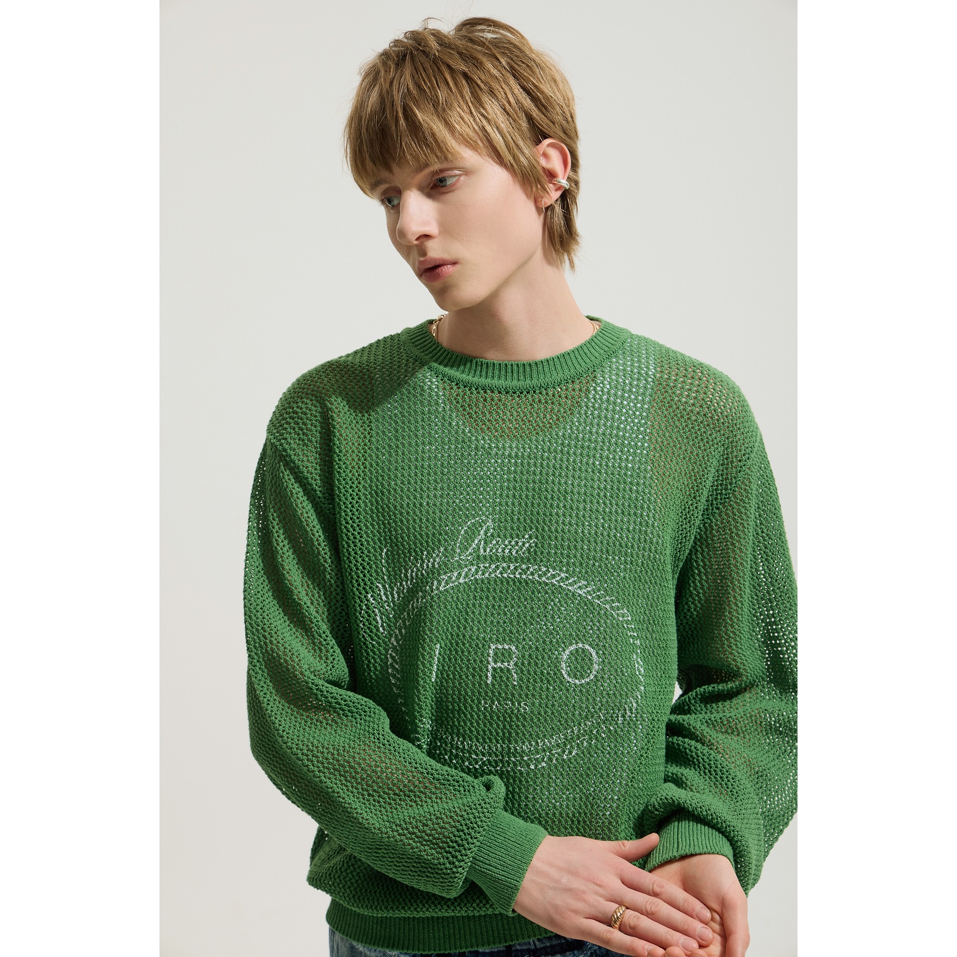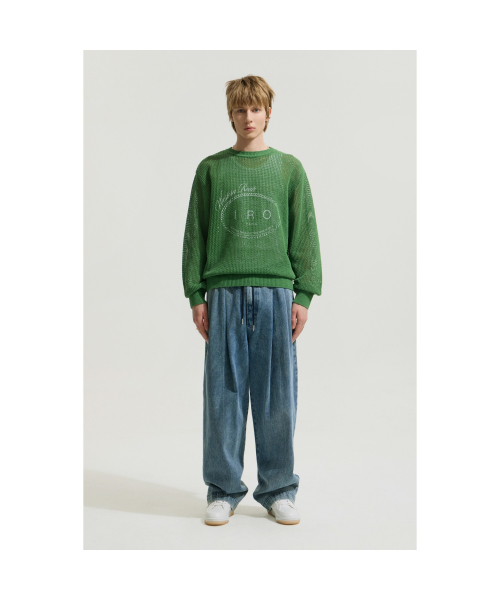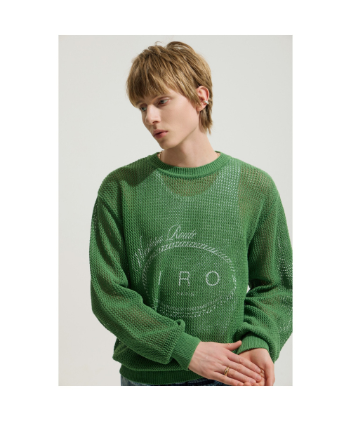 세미오버핏 실루엣을 선보이는 남성 긴팔 니트입니다.