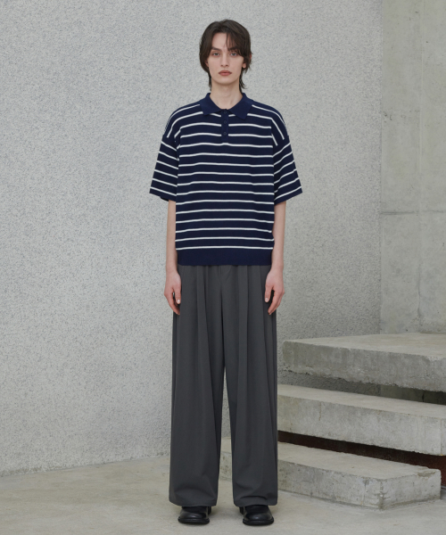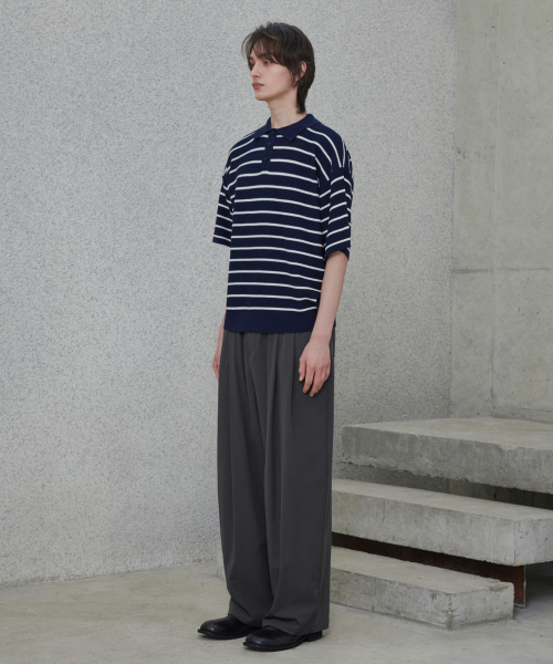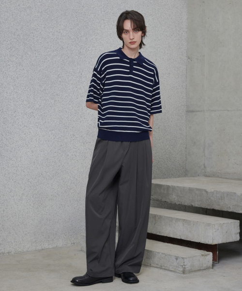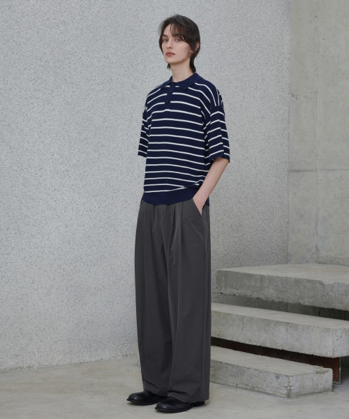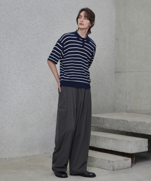 어드저스트 투턱 와이드 슬랙스_스트라이프 차콜