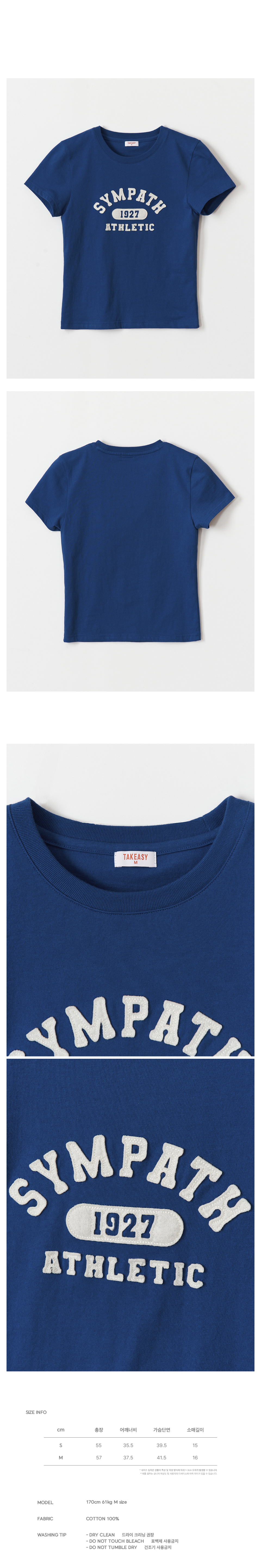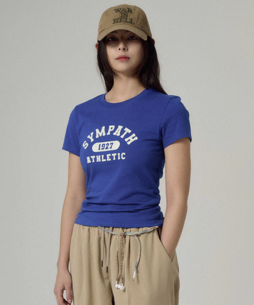 우먼스 애슬레틱 아플리케 숏 슬리브 (블루)