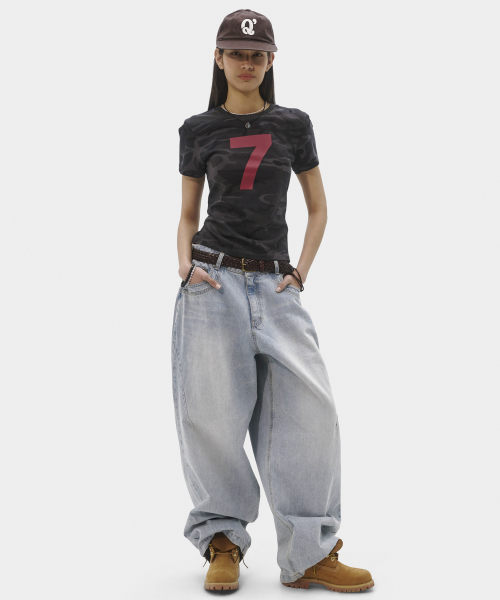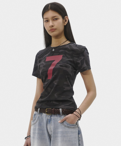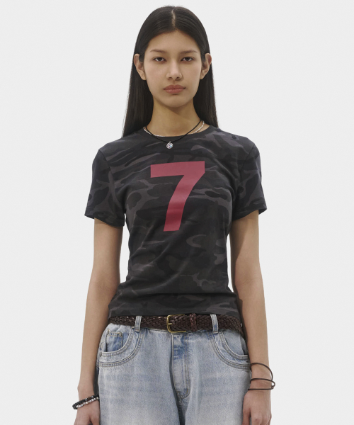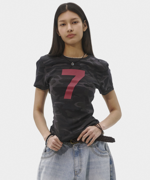 우먼스 카모 넘버링 숏 슬리브 (카모그레이)
