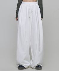 레오파드 하트 포켓 아플리케 트레이닝 핀턱 와이드 팬츠_블랙