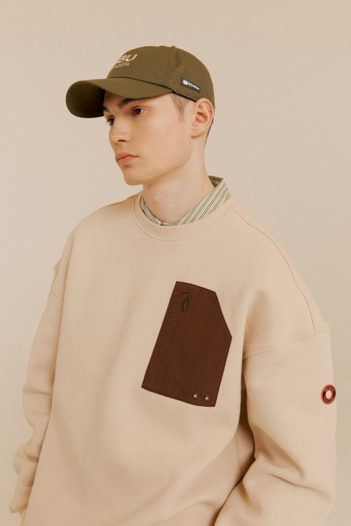지퍼 포켓 맨투맨 티셔츠 LIGHT BLUE